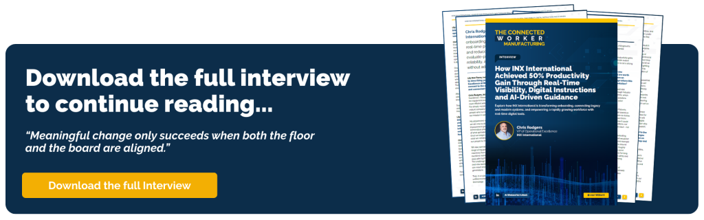 Lily Mae Pacey, Industry Analyst: Chris, can you start by describing your role as VP of Operational Excellence at INX International? How does it connect to the organization’s smart manufacturing and connected worker strategy?