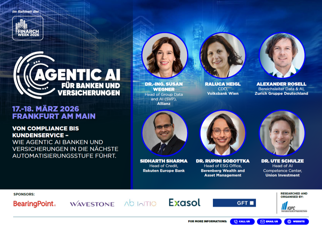 AGENTIC AI in Banken & Versicherungen Von Pilotprojekten zu produktiven Agenten – die Konferenz für die nächste Generation der KI im Finanzsektor Die FINARCH WEEK bringt Sie mit dieser spezialisierten Roadshow in den Mittelpunkt eines zukunftsweisenden Themas: Agentic AI. ...