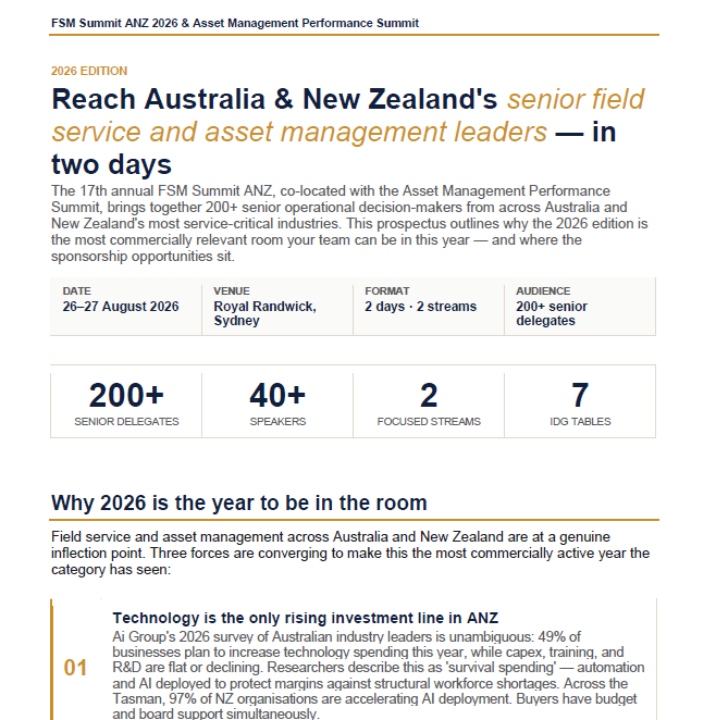 Taking place 26-27 August 2026 at Royal Randwick, Sydney, the 17th Annual Field Service Management Summit (FSM) will once again unite senior decision-makers from across infrastructure, utilities, energy, transport, and asset-heavy industries.