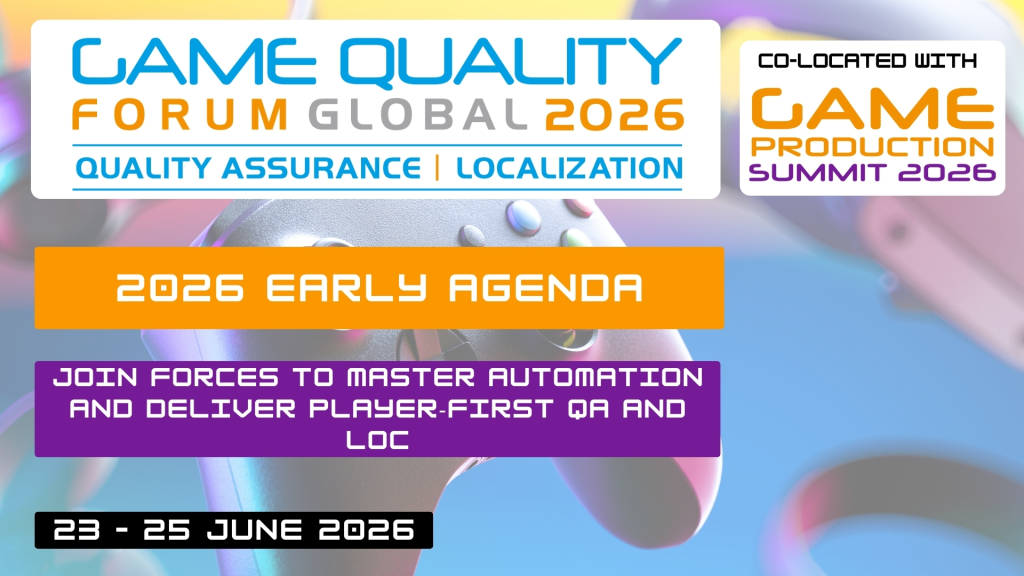 The Game Quality Forum Global 2026 Early Agenda is here! Join leading QA and Localization leaders from studios including CD PROJEKT RED, Funcom, Playrix, Rovio, Gameloft and Focus Entertainment in Krakow, Poland, 23–25 Jun ...